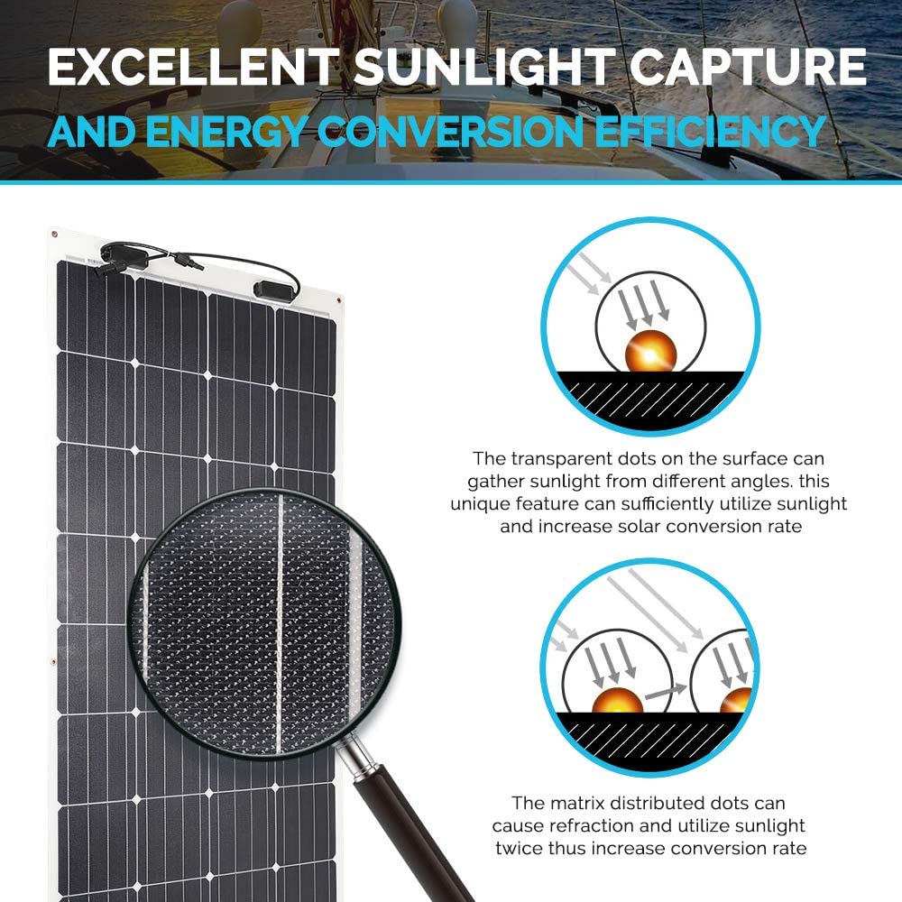 • 【Extremely Flexible】With a flex range of up to 248 degrees, this panel is capable of meeting a wide range of applications where standard panels can be inconvenient to mount, such as on the curved roof of an airstream.