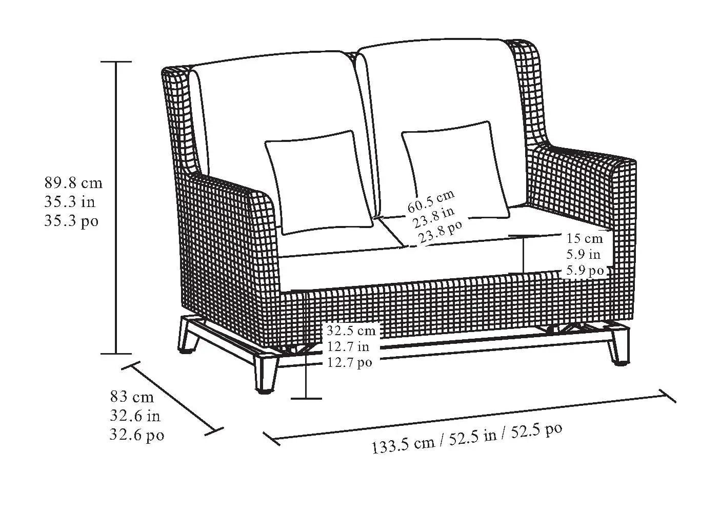 · Cushions and pillows are made with Sunbrella® fabric which is resistant to stains, mildew, chlorine, and fading