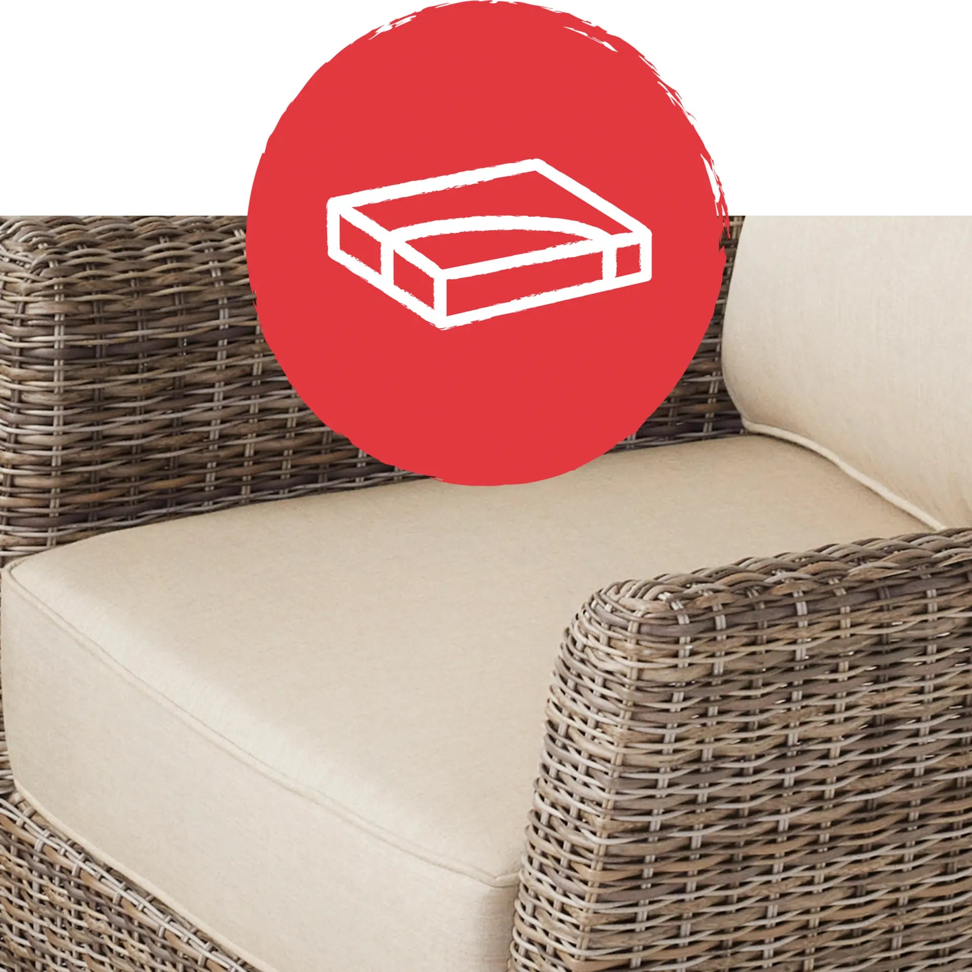 • Cushions and Pillows Are Made with Sunbrella® Fabric That Is Resistant to Stains, Mildew, Chlorine, and Fading