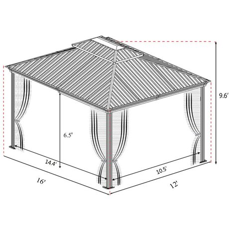 Overall 16' W x 12' D x 9' 6'' H