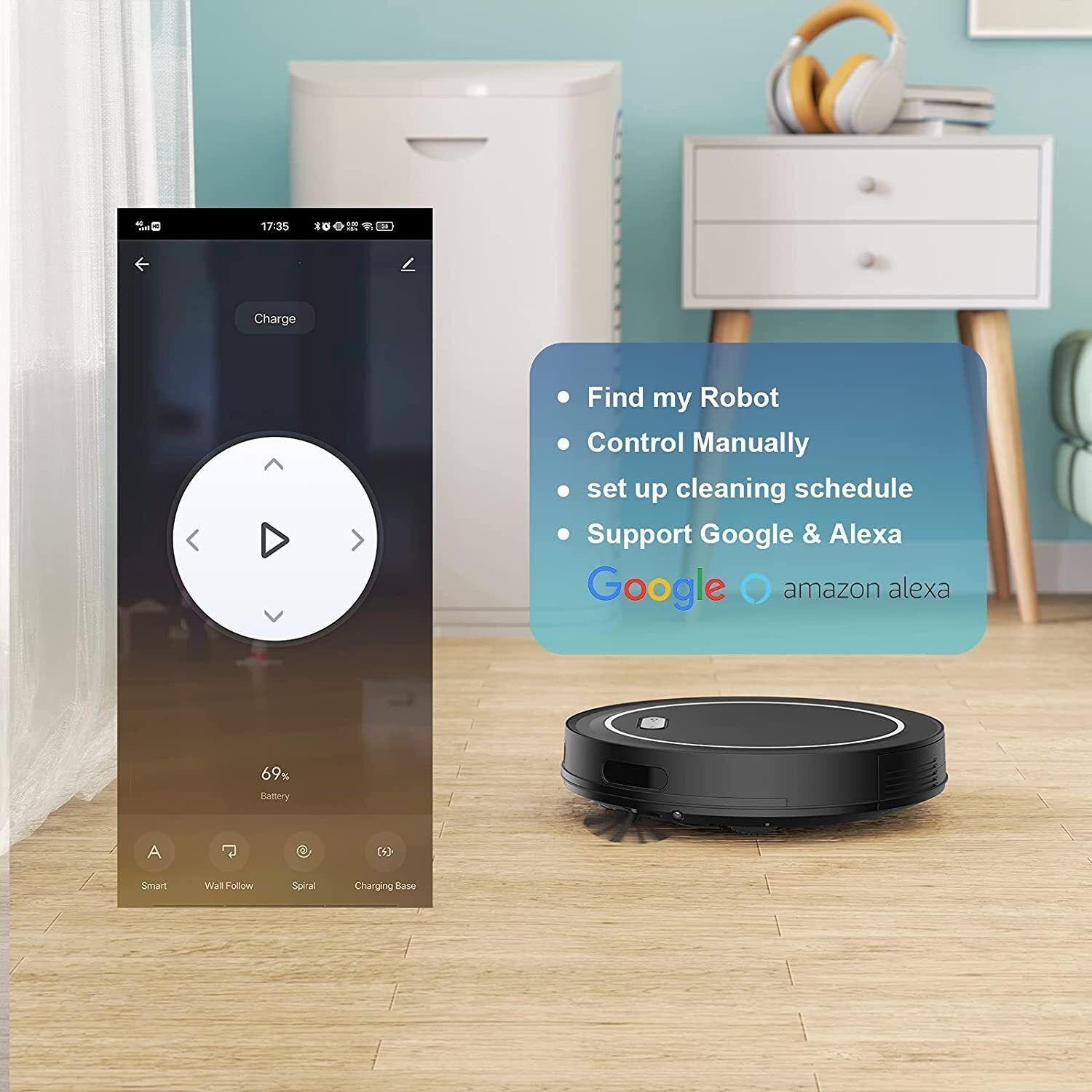 - EFFORTLESS SMART CLEANING - With the convenient app, you can create your own cleaning schedule and accomplish all your cleaning needs from wherever you are with zero effort. You may also connect this sweeping robot to your Alexa/Google Assistant to start and stop cleaning, making it easy and convenient for all.