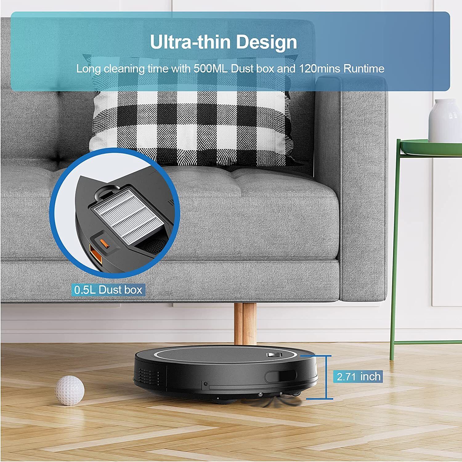 - ULTRA-SLIM DESIGN - Being only 2.71 inches tall, our best automatic vacuum cleaner easily glides under hard-to-reach areas like sofas, dressers, beds, and more. You also don't need to worry about drops and falls with its drop-sensing technology, it intelligently avoids falling down stairs and off ledges.