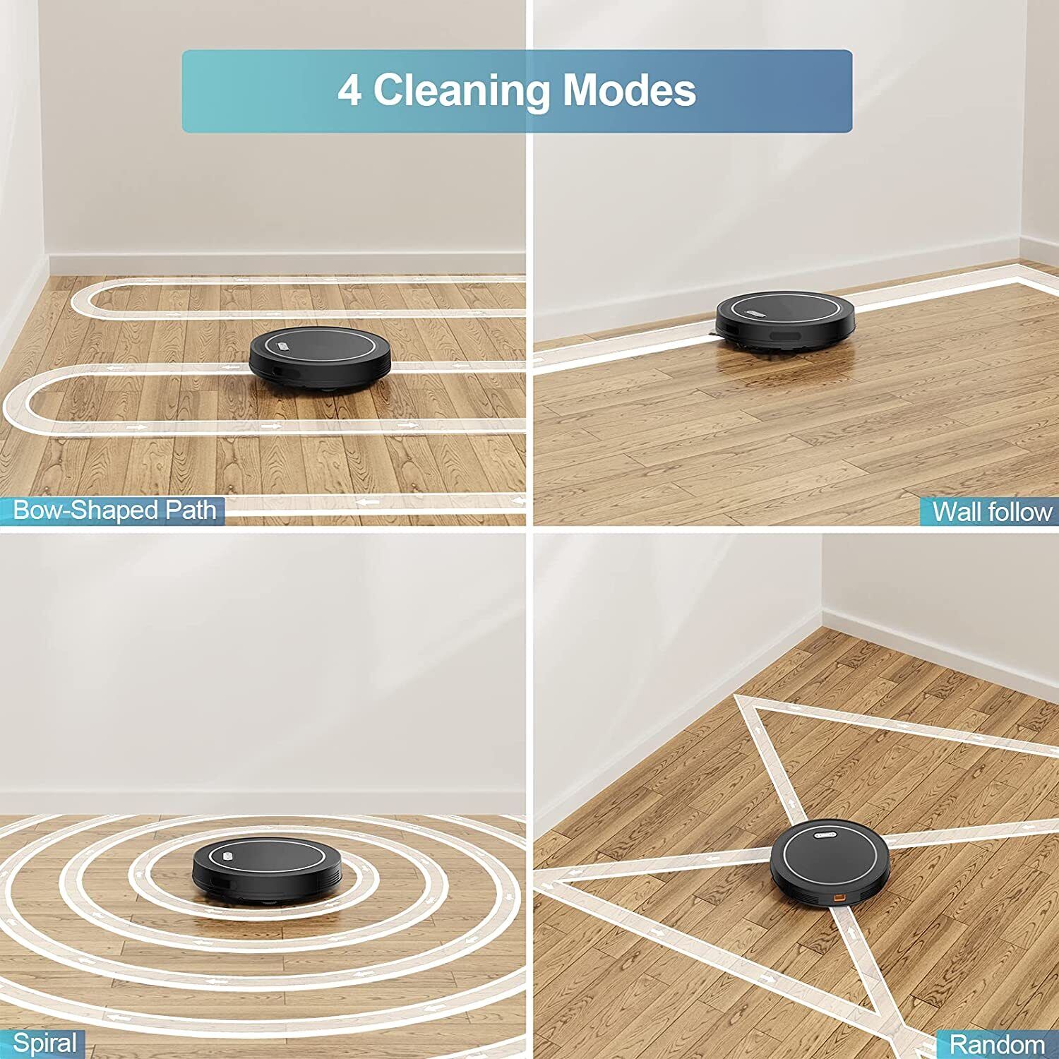 Best part of all, you can easily choose between 4 cleaning modes and get up to a maximum suction power of 2500 Pa, our smart robot vacuum cleans everything from hard floors to carpets. Ideal for daily messes, pet hair, and more. Plus, it is powerful yet quiet, making only 55 db of noise and being no louder than the hum of a microwave. It quietly cleans while you go about your day!