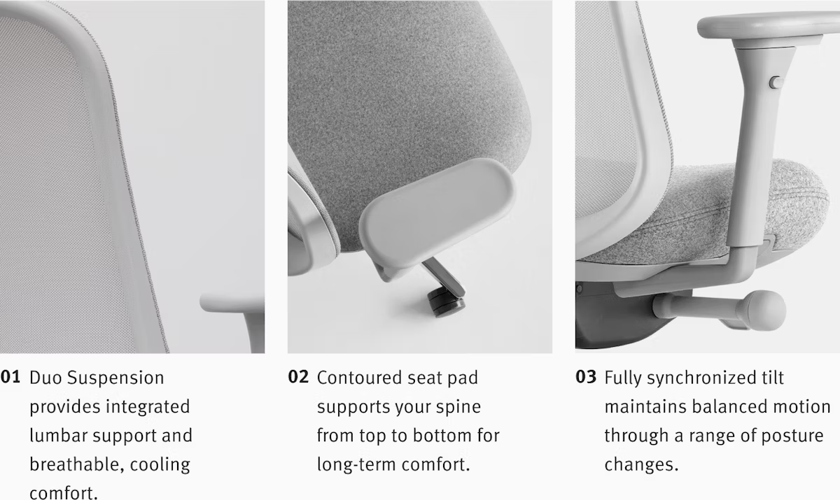 - Breathable Duo Suspension provides integrated lumbar support.