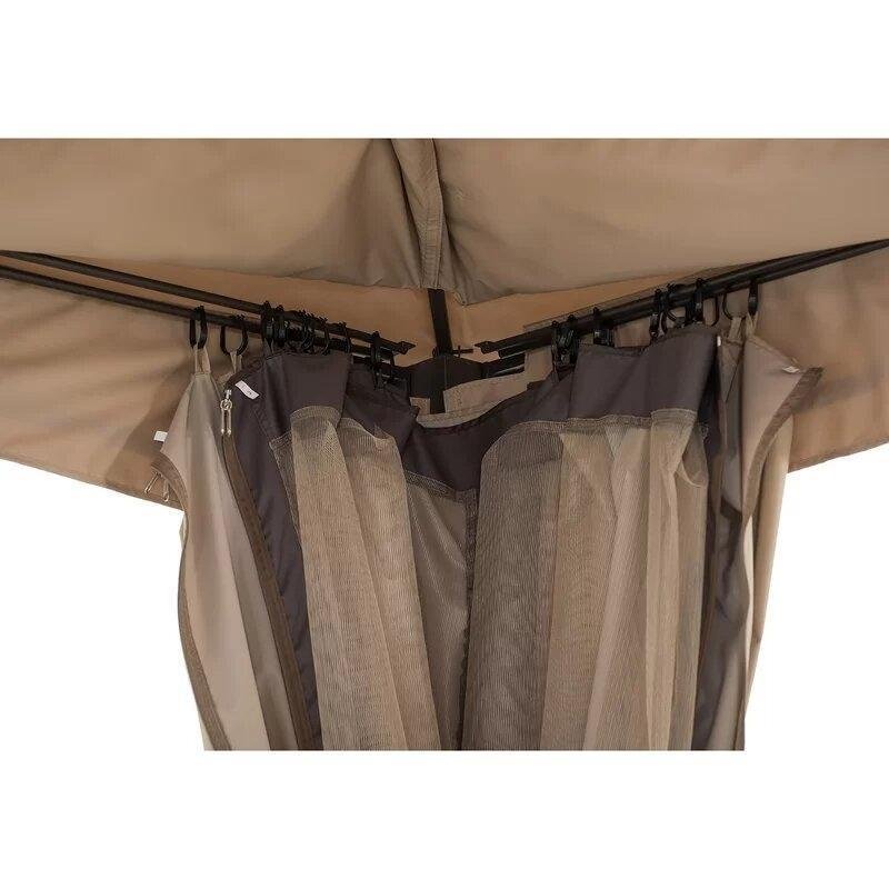 Expand your living space by moving the indoors outside to create an end-of-the-day oasis that��s the perfect spot for entertaining family and friends. This 12 ft. x 10 ft. gazebo by the world��s leading ready-to-assemble outdoor structure maker, Sunjoy, creates the perfect outdoor setting. Enjoy a covered spot outdoors under the rust-resistant powder-coated steel frame with a weather-resistant fabric canopy. Convenient battery powered LED lighting is incorporated into each frame post. In addition, enjoy your favorite music with Bluetooth enabled sound. Included privacy curtains may prevent prying eyes and the included mosquito netting will keep bugs away. Set the mood by suspending a chandelier from the incorporated ceiling hook for functional light and high design. With straight-forward,easy-to-follow assembly instructions you��ll be relaxing with your beverage of choice in your favorite new outdoor living space for years to come.