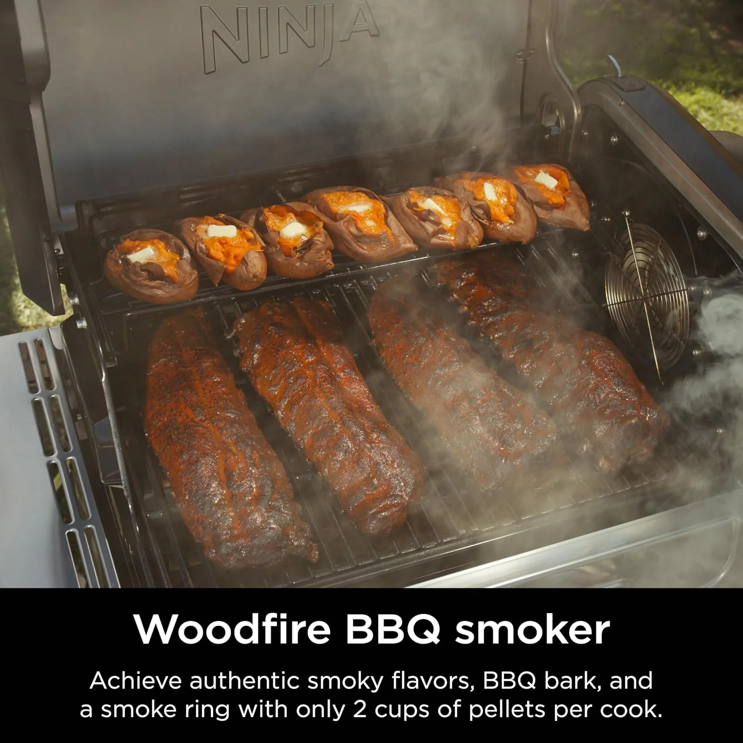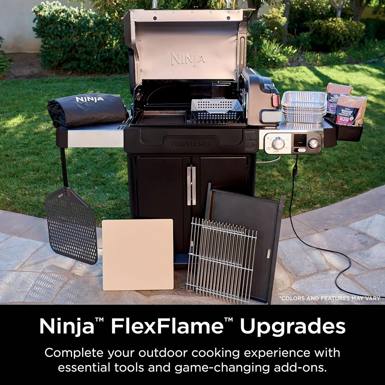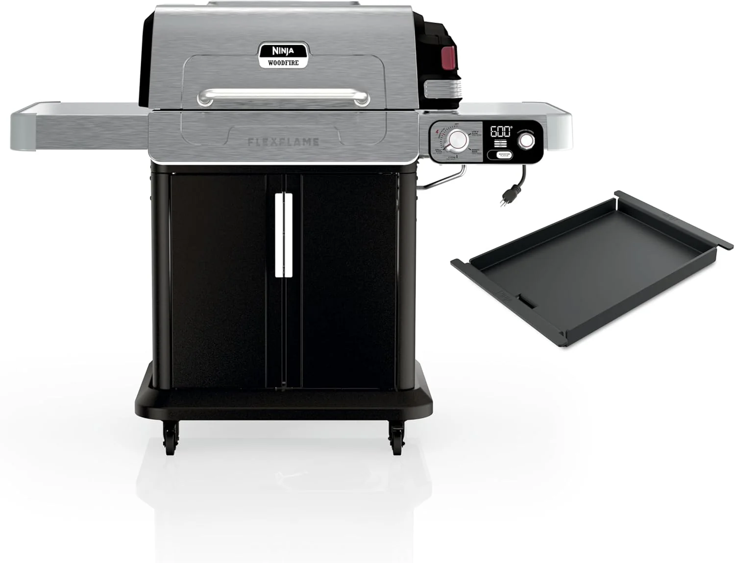 • Ninja FlexFlame, Grill and Smoker, Electric and Propane Grill, Roaster, BBQ Grill, 5-in-1 Cooking System, 3 Burner, Digital Control, Outdoor Cooking, Griddle, Pizza Maker, Stainless Steel, PG301