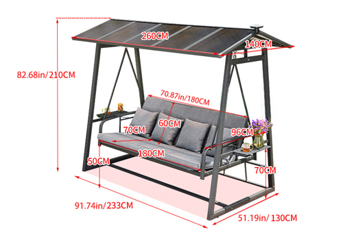 With this weather resistant patio swing chair, you can enjoy the shade in the garden or backyard, which also give you a long term to use and long lasting enjoyment for years to come. Easy to clean and maintain, no need to worry too much about it, just relax yourself. What a great choice for your porch & garden to give you the perfect spot to spend the quality time outdoor.