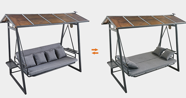 2-IN-1 Converting Seat: Backrest is adjustable turning the swing-bench into a comfortable flatbed with a simple locking mechanism on the side. Bringing optimal comfort for outdoor enjoyment.