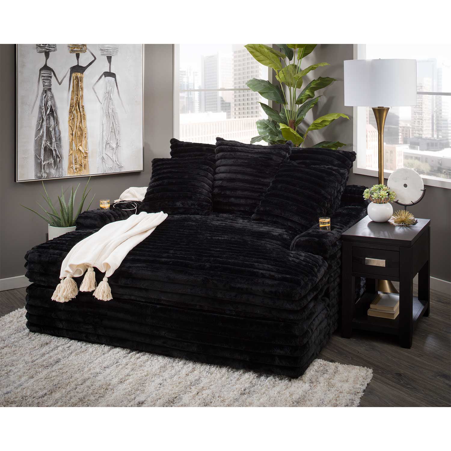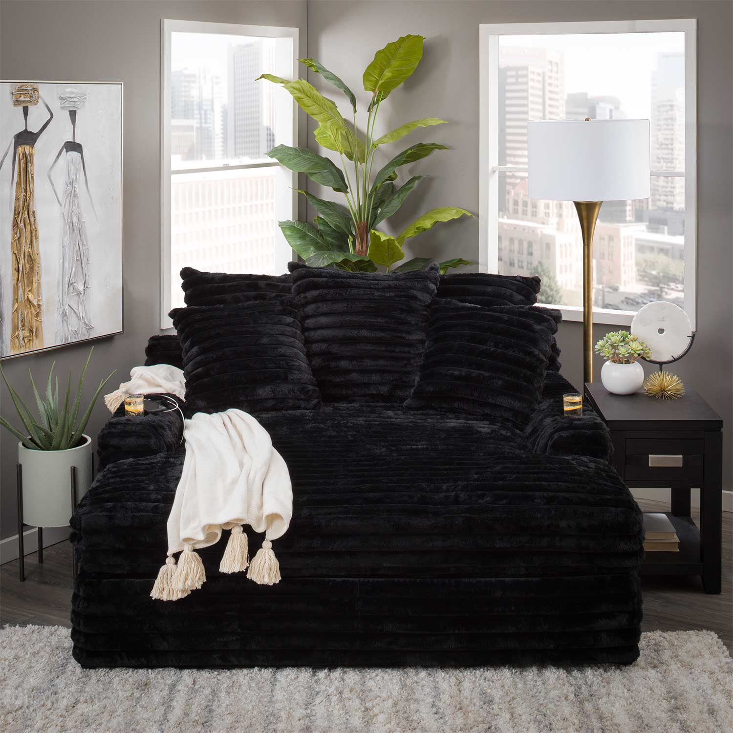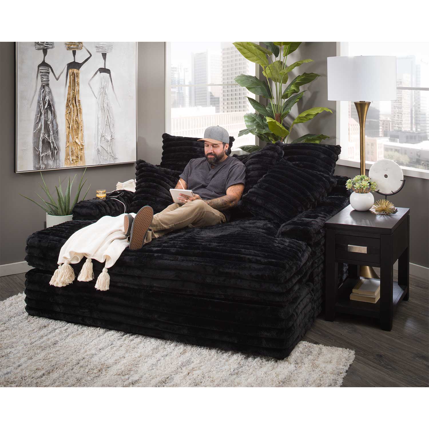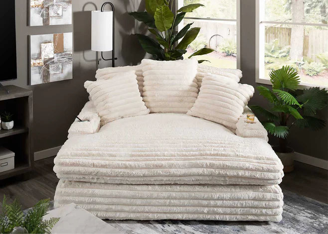 The name says it all!! This chaise is perfect to nestle into with a book or a cup of coffee, or for a nap. It’s also nice and roomy, so you can spread out as much as you want. It’s even sizable enough for two people to sit together and watch TV.