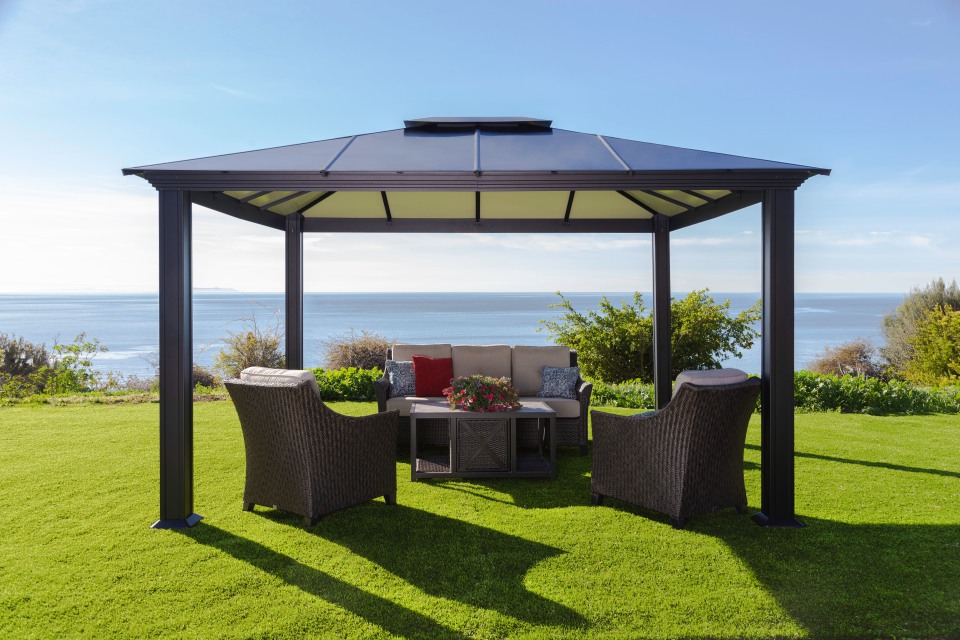 - Built for year-round use, the aluminum frame of the Santa Monica Gazebo is rust-resistant for years of enjoyment