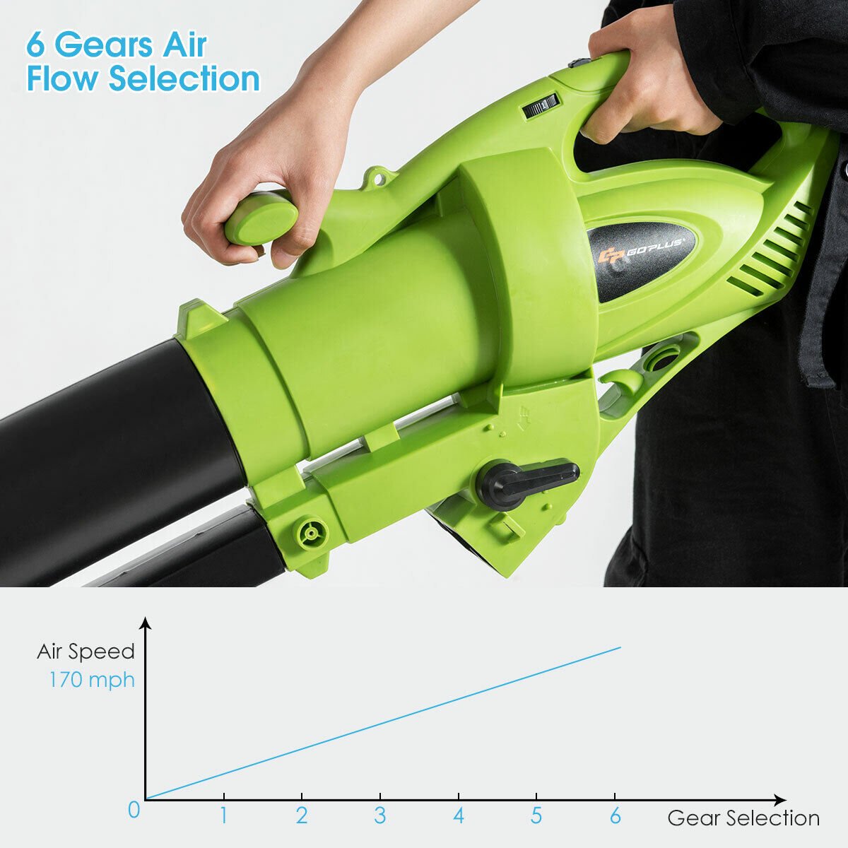 There are six different speeds on this cordless leaf blower, and you only need to press a button to generate powerful wind force. When there is a strong wind blowing at a speed of 170 mph, which facilitates inside and outdoor blowing tasks.