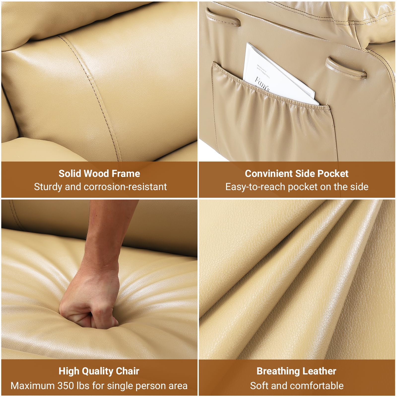 • PU Leather Power Lift Recliner Chair With Massage and Heat, Adjustable Furniture for Back, Legs w/ 3 Positions, Usb Port, Side Pocket (Beige, 27 Seat Width+Cup Holders)