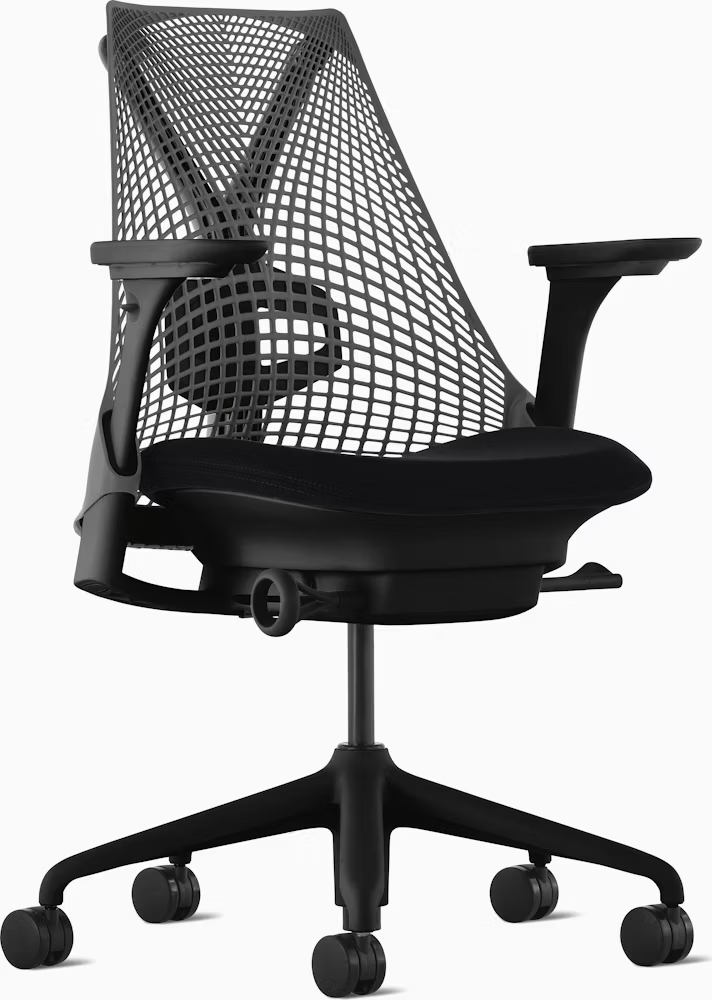 Inspired by the Golden Gate Bridge, the Sayl work chair makes a big impact with a small footprint. Its unique unframed back features elastomer strands that are stretched to provide the greatest tension where support is needed and less in areas that benefit from a greater range of motion. Speaking of motion, Sayl also features Harmonic Tilt technology, offering sitters a sense of balanced movement and support as they make moves throughout the workday. Plus, with no PVCs used, Sayl is up to 90% recyclable at the end of its long life.