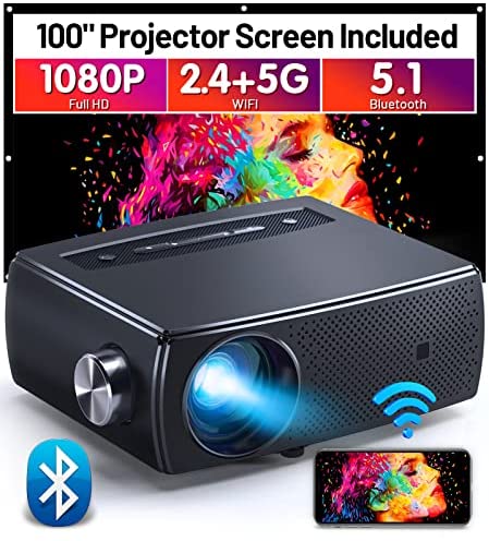 Mini Bluetooth Projector, CLOKOWE 9600L 1080P HD 5G WiFi Projector, Support 4K & Zoom, Portable Movie Projector with Dolby Audio