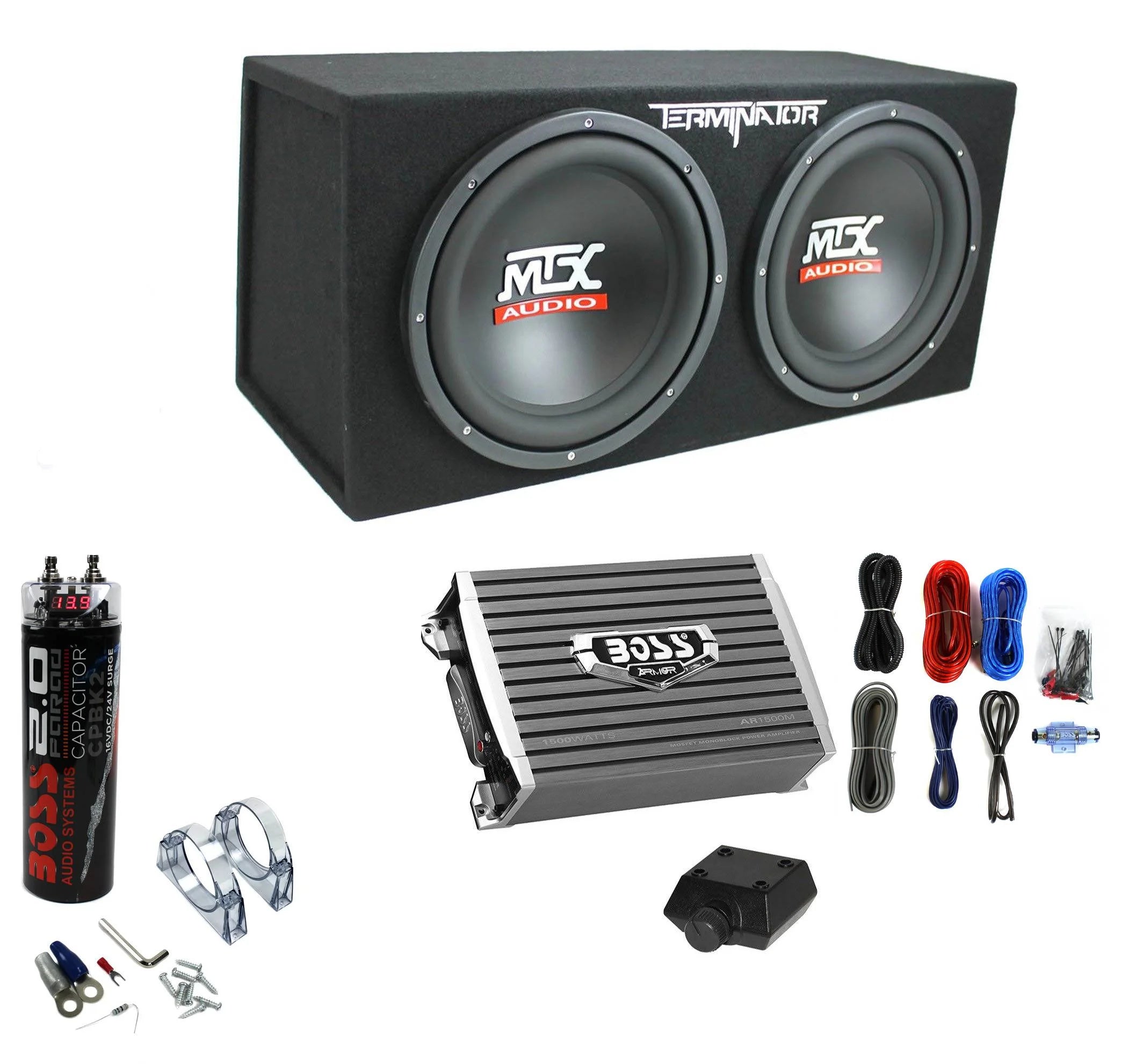 MTX TNE212D 12" 1200W Dual Loaded Subwoofer Box + 1500W Amplifier + Capacitor