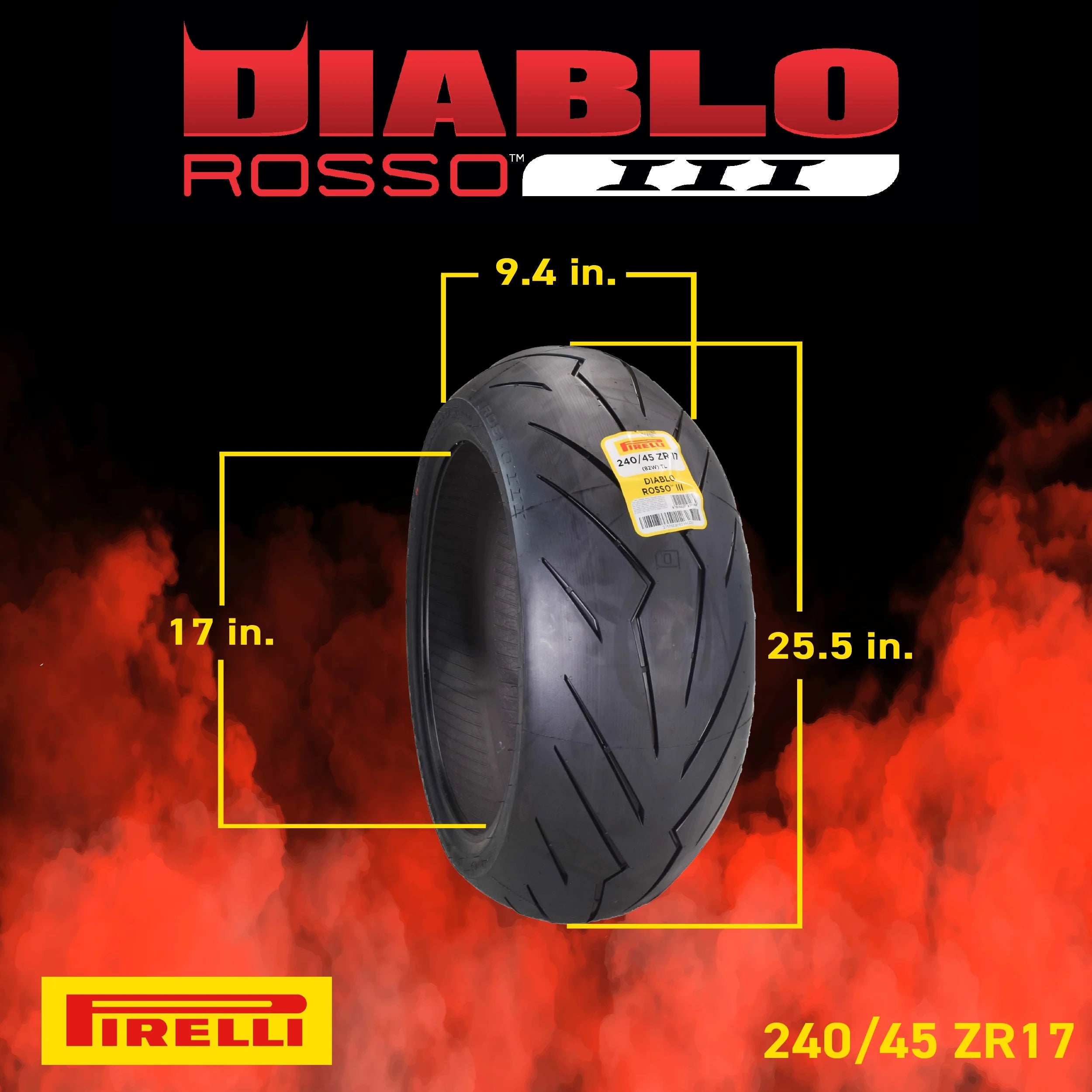 Pirelli Diablo Rosso III 120/70ZR17 Front & 240/45 ZR17 Rear Tire with Keychain