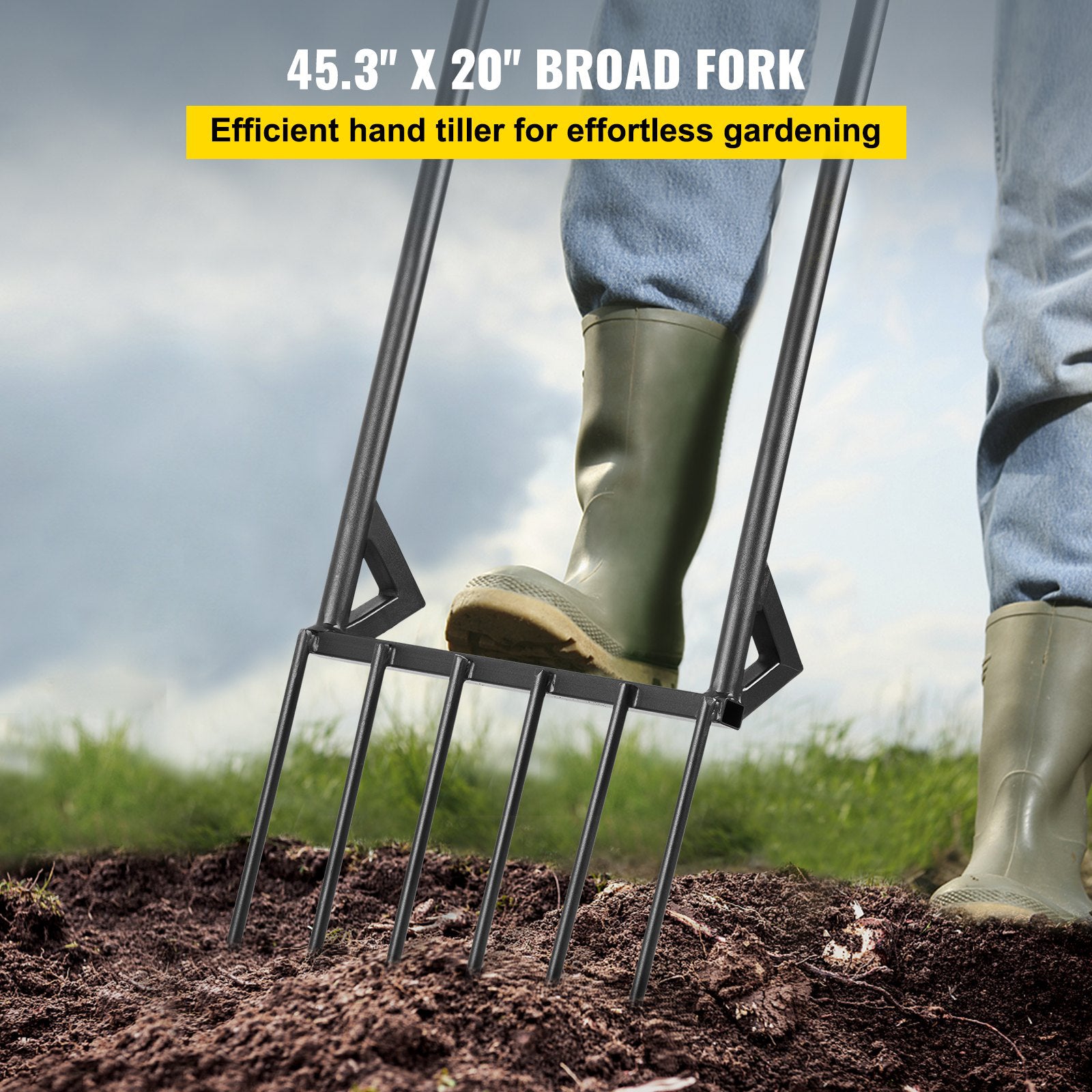 Premium 46-Inch Hand Tiller Broad Fork Tool For Gardening Cultivating