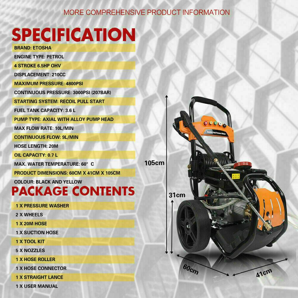 Pressure Washer Max 4800PSI 6.5HP Gas with Power Spray Gun 4-Stroke 5 Nozzles