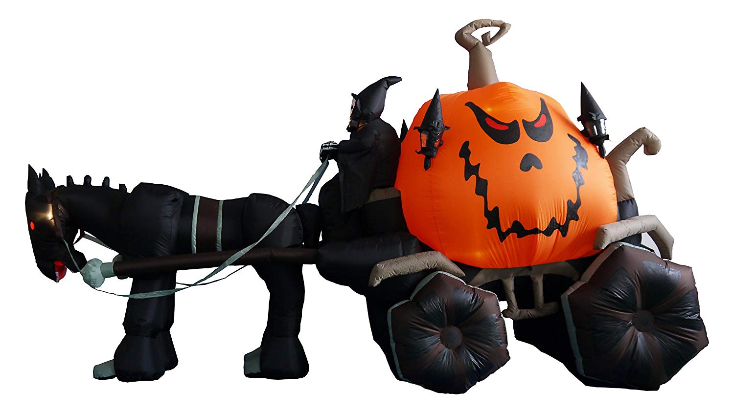 11.5 Foot Long Inflatable Grim Reaper Driving Pumpkin Carriage